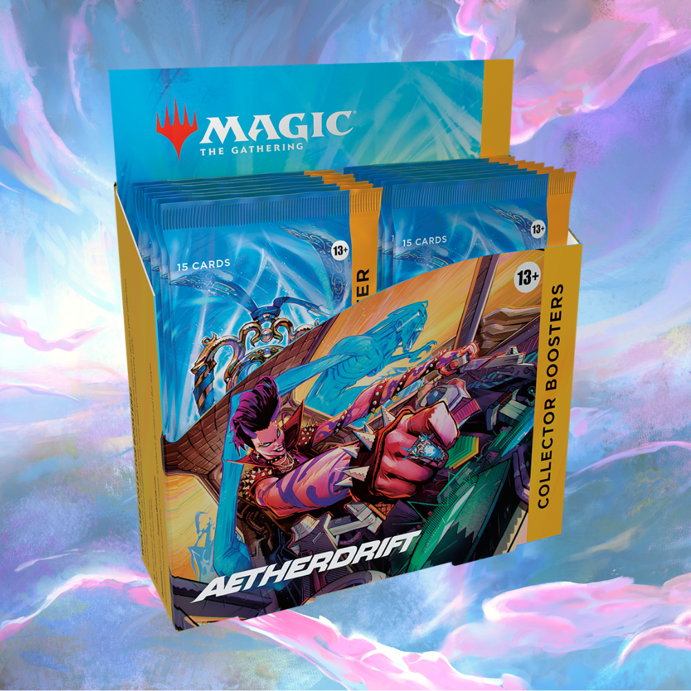 - 12 Aetherdrift Collector Boosters; each Collector Booster contains 15 Magic: The Gathering cards